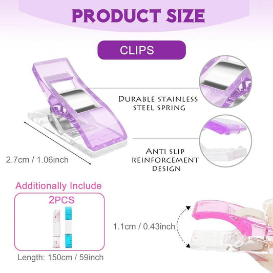 Plastic Clips, Multipurpose Sewing Clips Quilting Clips Assorted Colors Fabric Clips for Sewing Supplies Quilting, Sewing Quilting Supplies, 50 Count Clips, Add Two Rulers