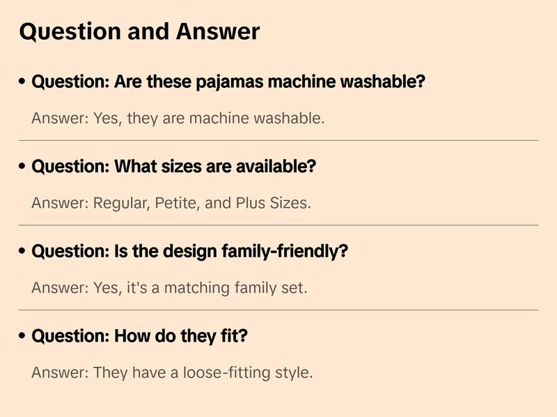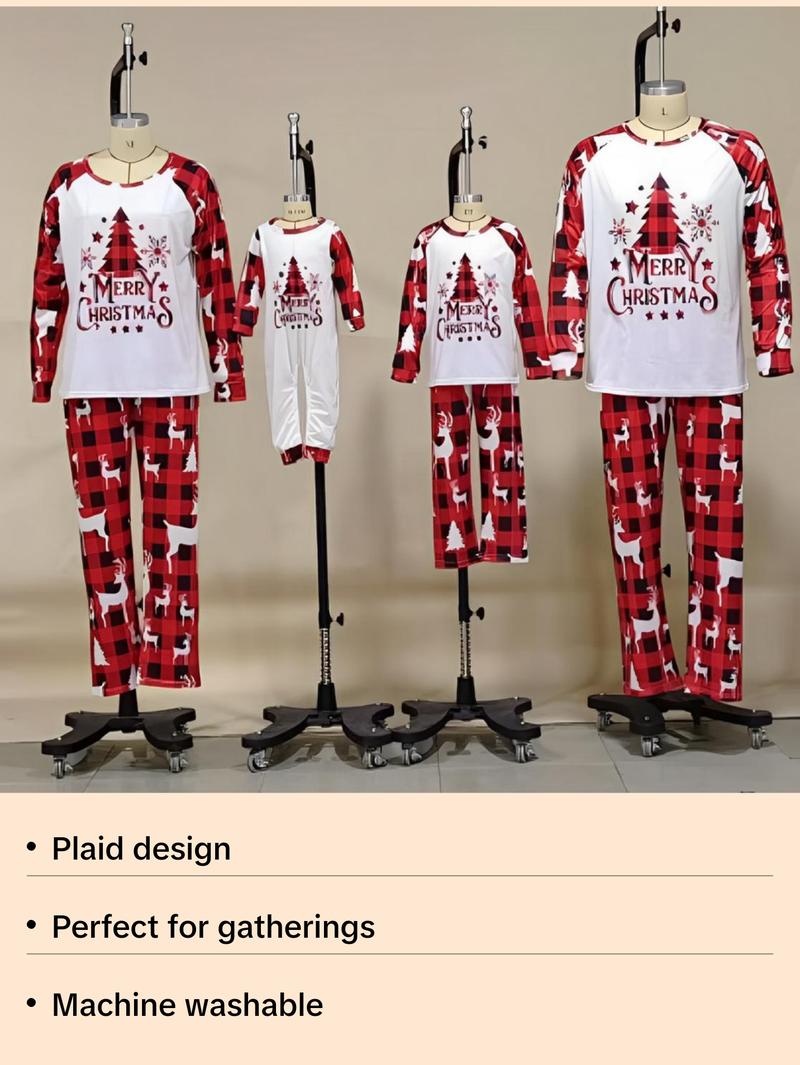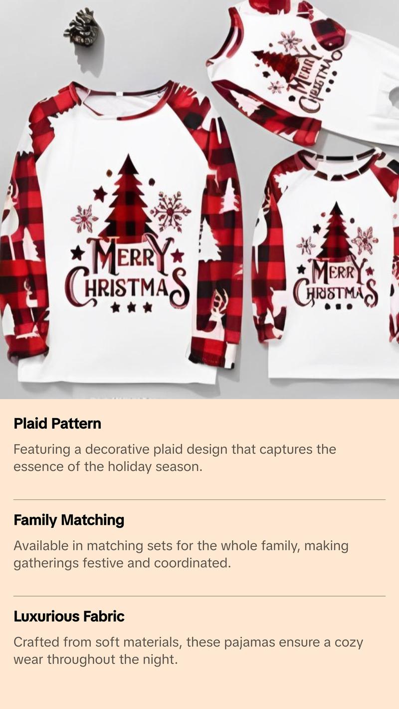 Ideal for Christmas gatherings, these pajamas are machine washable, featuring a crew neck neckline and pull-on closure. Available in Regular, Petite, and Plus Sizes to fit all family members.